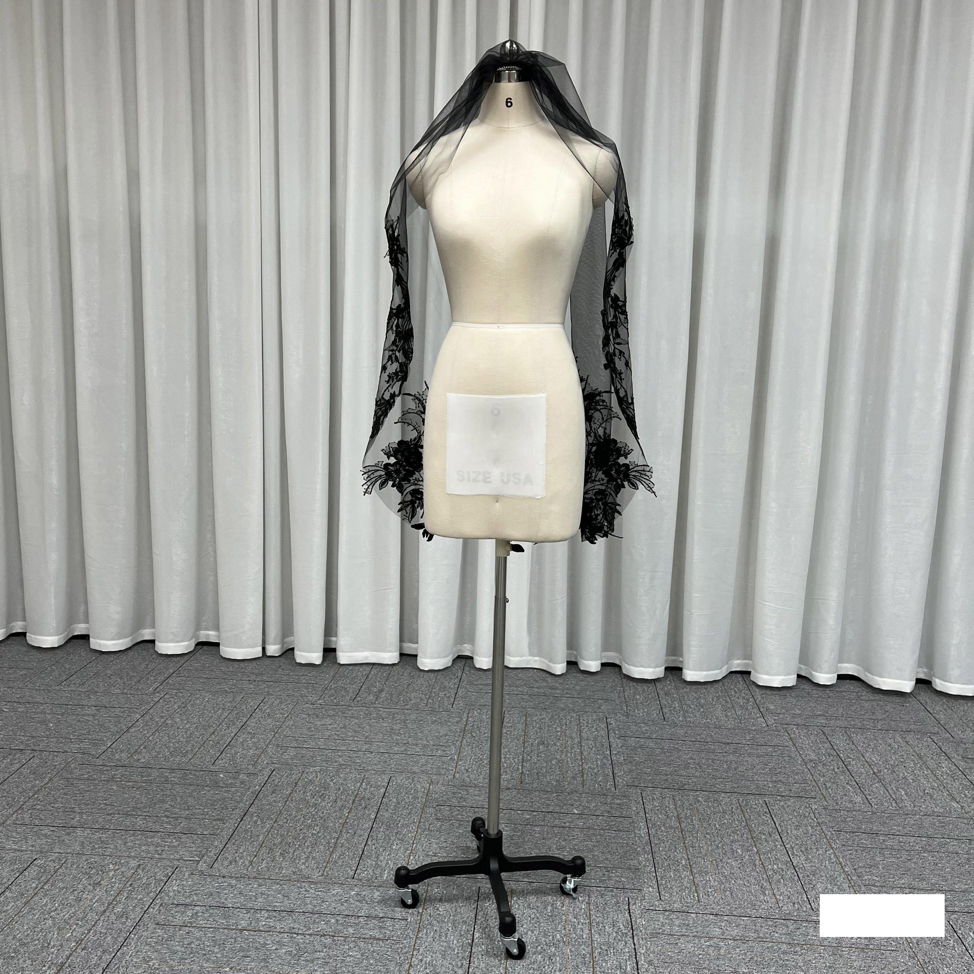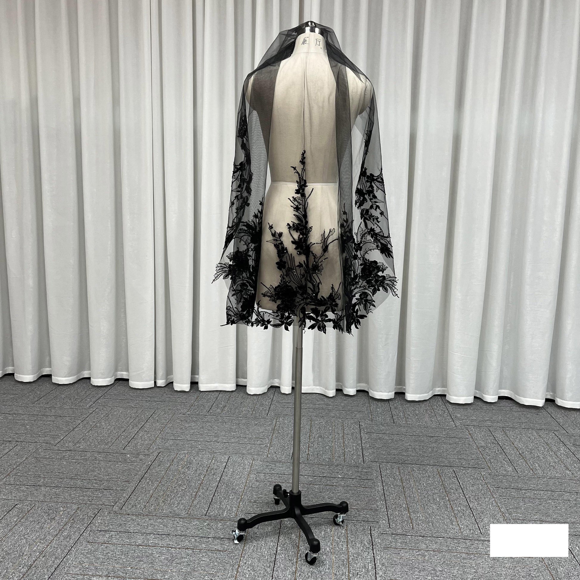 Black Bridal Wedding Dress Hand Embroidered Lace Veil Single Layer With Comb Wedding Veil